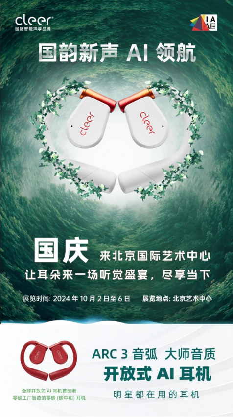 This expo will last until October 6th. If you are also interested in intelligent acoustics and innovative audio products, you can go to the Cleer exhibition area to personally experience this Cleer ARC 3 tone arc open AI earphone, which integrates multiple global pioneering technologies. In addition, there will be various exciting activities and benefits waiting for everyone during the exhibition. Please visit!