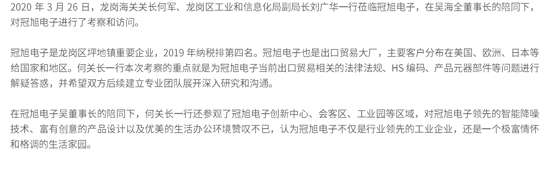 龍崗海關(guān)何關(guān)長蒞臨冠旭電子
