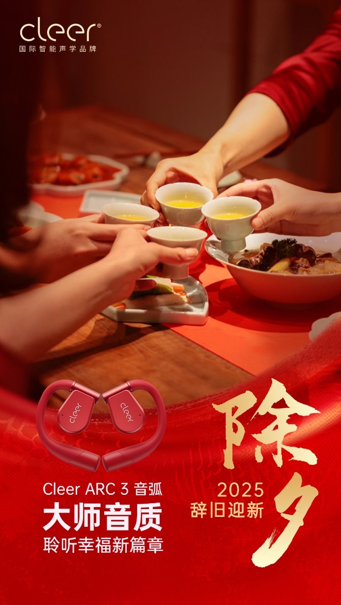 除夕夜是新年的“重頭戲”,一家人圍坐在一起,一邊看春晚一邊享受美味,年味就濃縮在一頓豐盛的年夜飯里。在辭舊歲的美好時刻,不妨也同樣大膽迎新“聲”,為自己、為親友的新年增添一份儀式感。而這款擁有著“大師音質(zhì)”的Cleer ARC 3 音弧,足以成為新年迎新“聲”的最佳選擇。