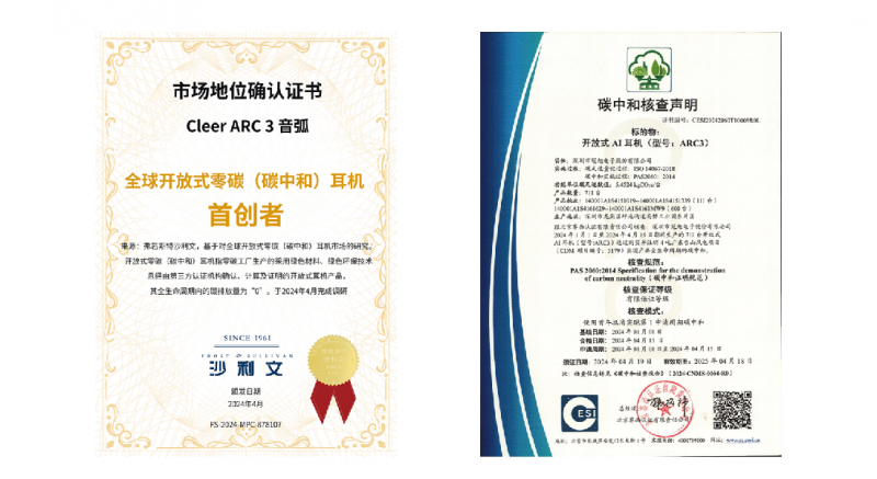 技術(shù)創(chuàng)新之外,ARC 3 音弧的可持續(xù)發(fā)展理念同樣值得點贊。作為全球首款由零碳工廠智造的開放式AI耳機,ARC 3 音弧從原材料選擇、生產(chǎn)、運輸全過程,嚴格貫徹低碳理念。產(chǎn)品所用材料均為可循環(huán)、可回收環(huán)保材質(zhì),生產(chǎn)全流程使用綠色能源,以實際行動積極響應(yīng)全球可持續(xù)發(fā)展戰(zhàn)略,并獲得國際權(quán)威認證機構(gòu)沙利文與塞西的零碳(碳中和)認證。