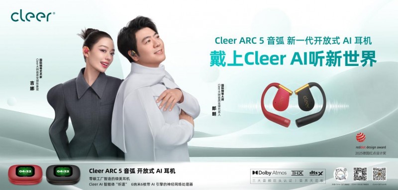 2025年,Cleer以顛覆之勢再度發(fā)布全新開放式AI耳機Cleer ARC 5 音弧,在ARC 3的技術(shù)沉淀上實現(xiàn)全面進化。作為全球首款同時集成杜比、THX、DTS三大頂級音頻技術(shù)的開放式耳機,ARC 5不僅在聲場空間感與音質(zhì)表現(xiàn)上實現(xiàn)跨越式突破,更首發(fā)搭載自研AI智能體“聽道”,支持多種主流AI大模型,帶來AI同聲傳譯、AI語音助手、AI語音實時轉(zhuǎn)筆記等功能,讓耳機不再是單一的聽音設(shè)備,而是變?yōu)椤岸渖系腁I生產(chǎn)力”。這款旗艦新品,成為Cleer持續(xù)深耕智能音頻賽道、引領(lǐng)行業(yè)革新的又一標志性成果。